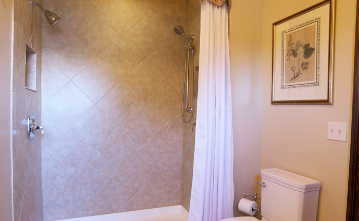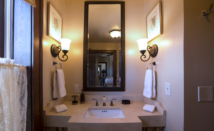 The heated tile bathroom floor in the attached private bathroom is a luxury that surprises many of our guests. This bathroom also includes a large walk in shower with 2 shower heads (one on each side.) Plush bath linens always pampers our guests.