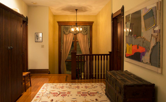 We hope our guests feel at home at Wallace Manor. Our guests are free to wander and relax in the luxurious common spaces that define the grandness of Wallace Manor. Period furnishings and art mix with modern edgy art throughout the common rooms. The first floor common spaces include a grand “Men’s” parlor, the more intimate “Lady’s” parlor, a comfortable library and the opulent dining room. These rooms are separated by the large original pocket doors.