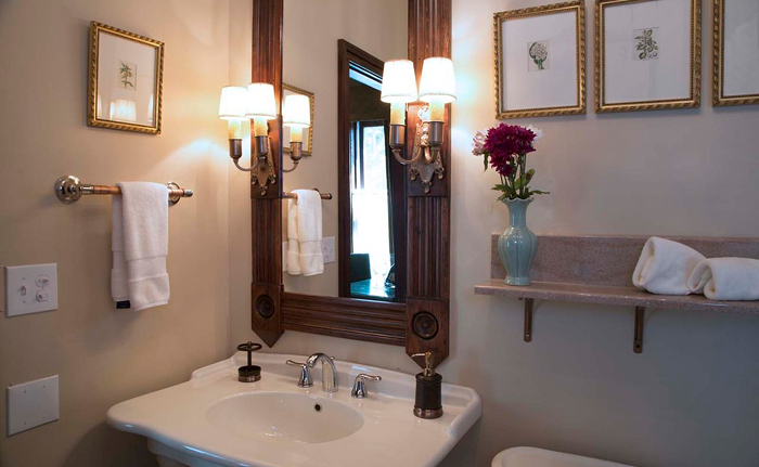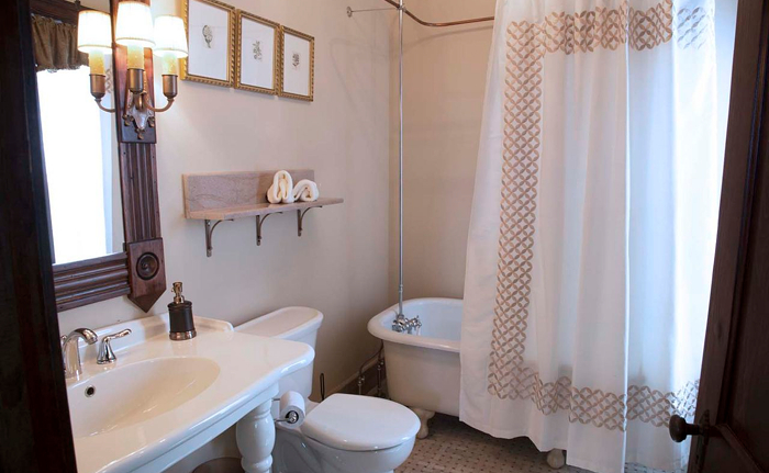 Our guests will be in for a delightful surprise as they step onto heated bathroom tile floor in the attached private bathroom.� Bathroom fixtures in this bathroom include a large pedestal sink and a clawfoot bathtub/shower.�